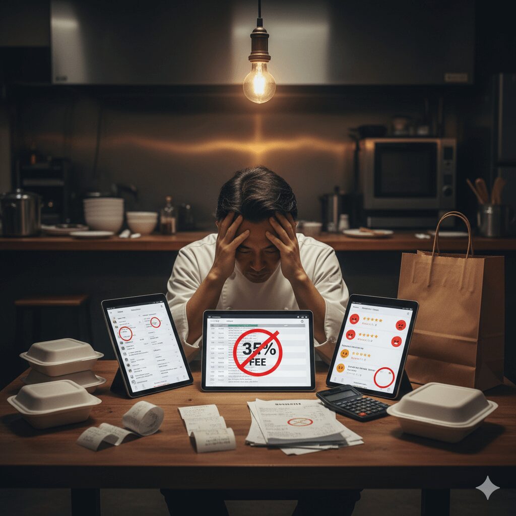 「配送の遅延や、配達員の質によるトラブルで店自体の評判が下がるのが怖い」 これらは現在のデリバリー業界が抱える構造的な問題です。汗水垂らして作った料理の利益が、プラットフォーム側に吸い上げられているのが実情です。